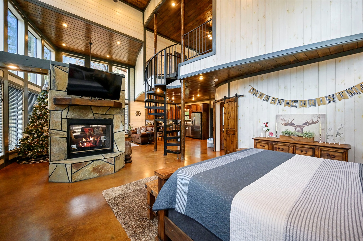 King Bed & Loft Space – Plush bedding for a restful night’s sleep.