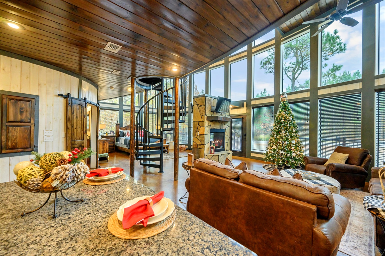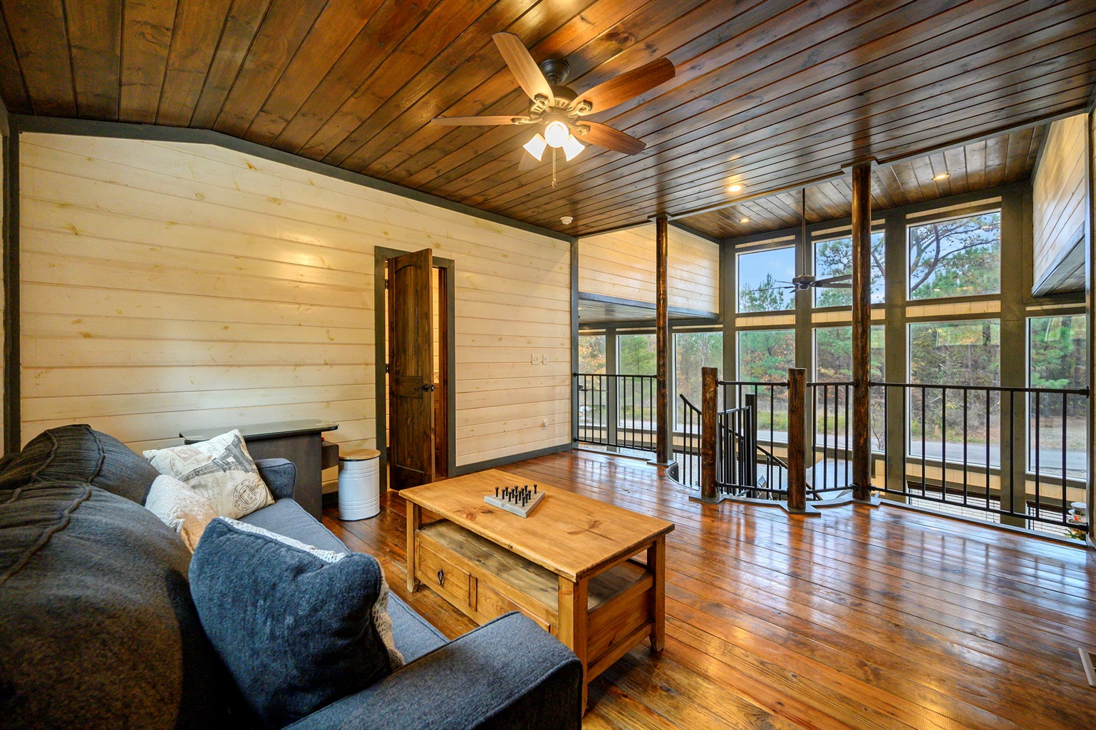 1 Bedroom • 2 Bathrooms (1 full, 1 half) 2 Baths (1 full, 1 half) • Sleeps 1-4Round Here Buzz Cabin – Cozy, Romantic Escape in Broken Bow