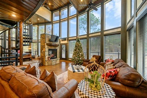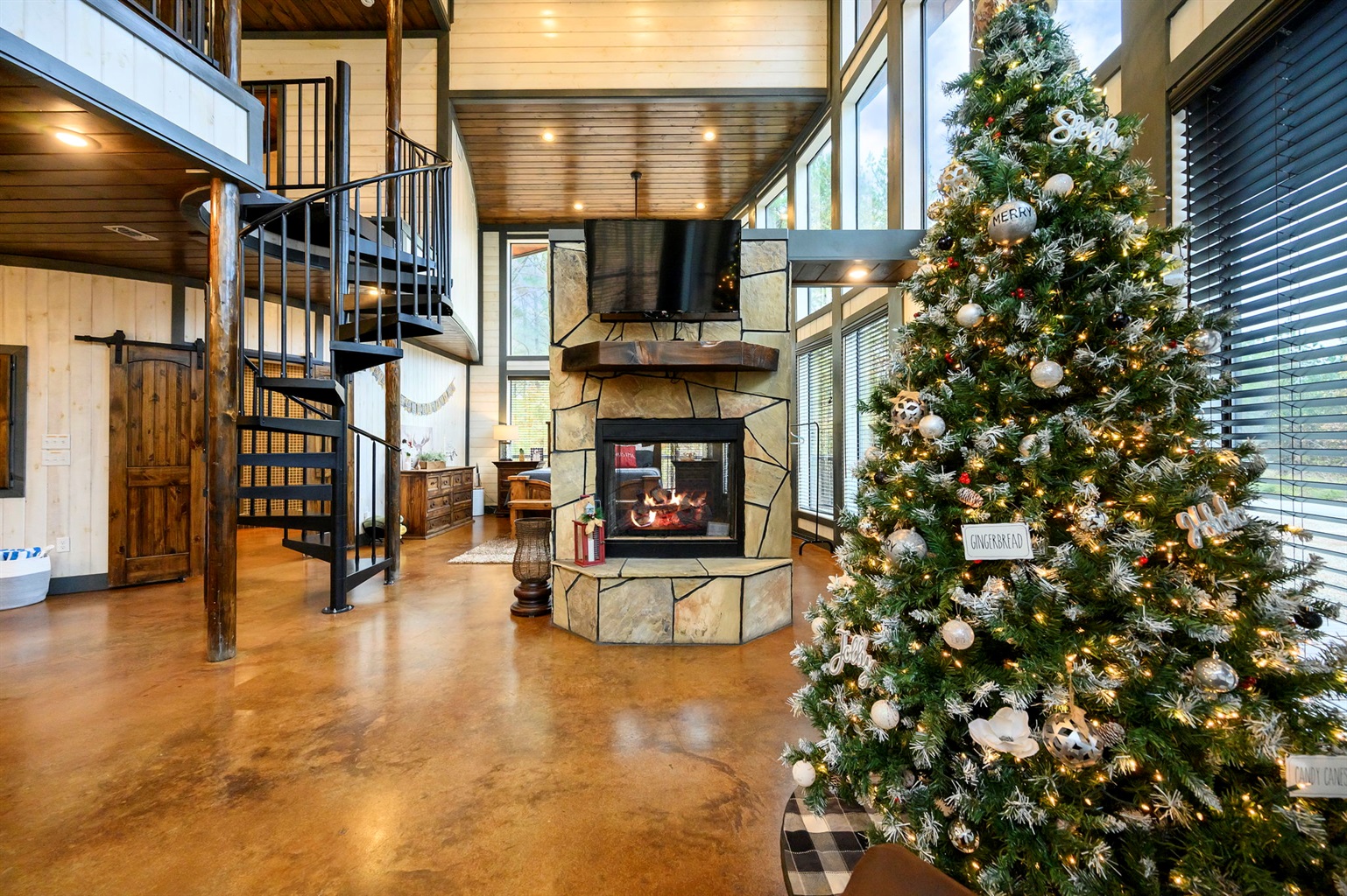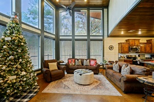 Stylish Interior – Open-concept living with a fireplace, comfy seating, and a fully equipped kitchen.